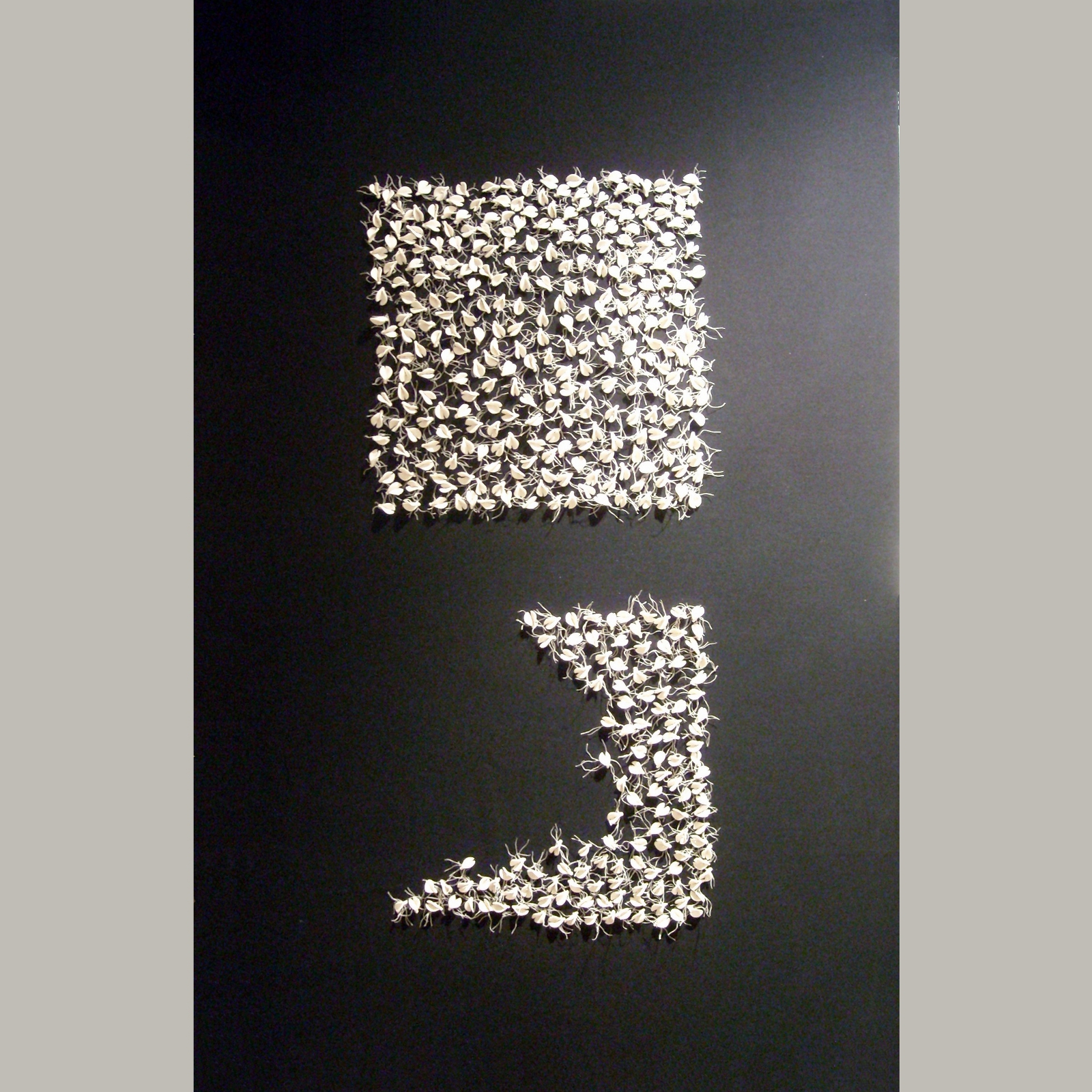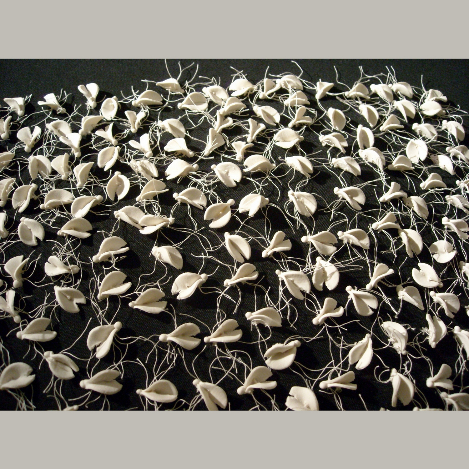 Éléments en grès blanc brodés sur tissu noir