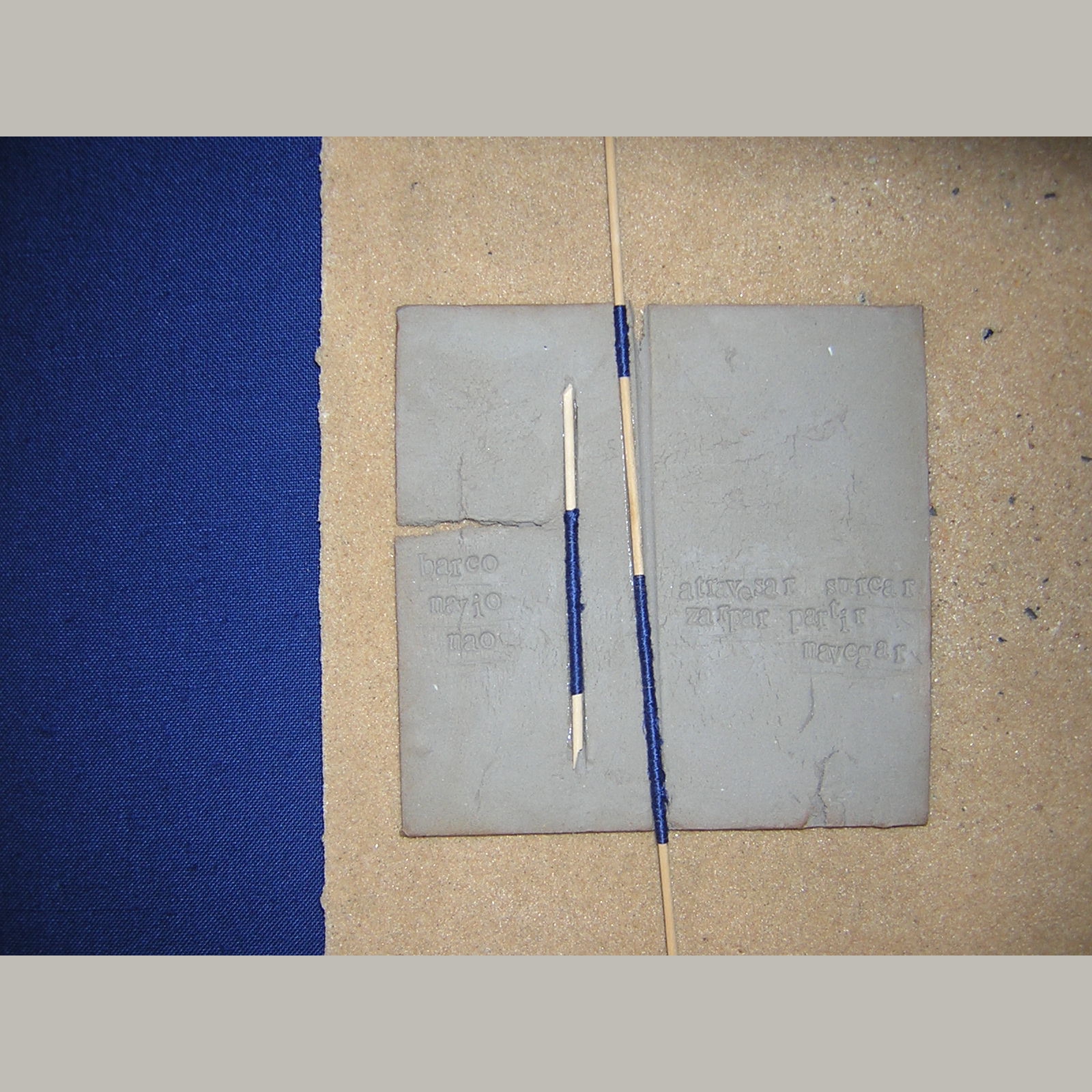 Grès, tissu, fils de coton , sable