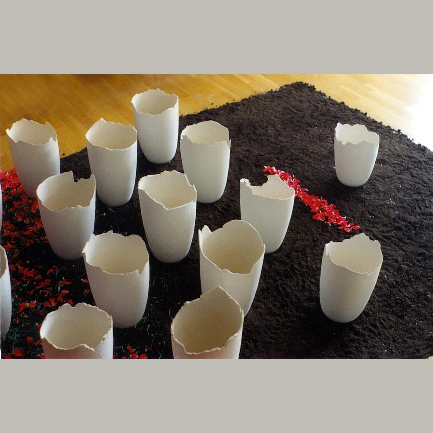 céramique non émaillée, terre, pétales